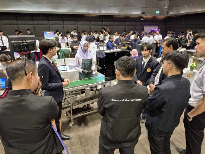 นายสำราญ วังบุญคง ผู้อำนวยการวิทยาลัยการอาชีพสิงหนคร (รัตน์ ประธานราษฎร์นิกร) ร่วมพิธีเปิดการประกวดสุดยอดนวัตกรรมและเทคโนโลยีสิ่งประดิษฐ์อาชีวศึกษา การประกวดสิ่งประดิษฐ์ของคนรุ่นใหม่ ระดับภาค (ภาคใต้) ครั้งที่ 36 ประจำปีการศึกษา 2568 และเข้าเยี่ยมชมให้กำลังใจ คณะครูและนักเรียน นักศึกษา จำนวน 2 ผลงาน ประกอบด้วย